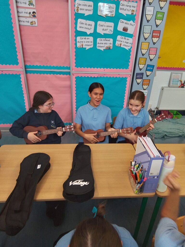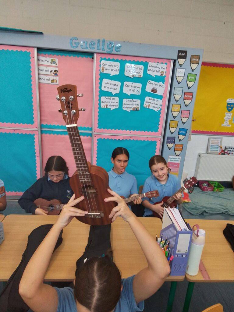 5th and 6th Class are very lucky to get the opportunity to learn a new instrument this year. We welcomed William from Kildare Music Generation into our classroom for the start of our ukulele lessons. William will be working with us throughout the year, teaching us how to play this exciting new instrument. It’s a wonderful opportunity to learn new skills, enjoy music together and challenge ourselves in a fun way. We are all really excited about this experience and can’t wait to showcase our ukulele playing at the end of the year!