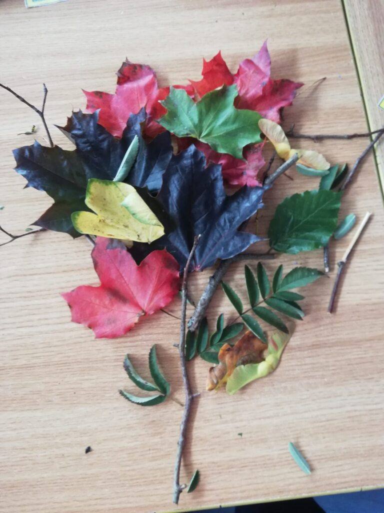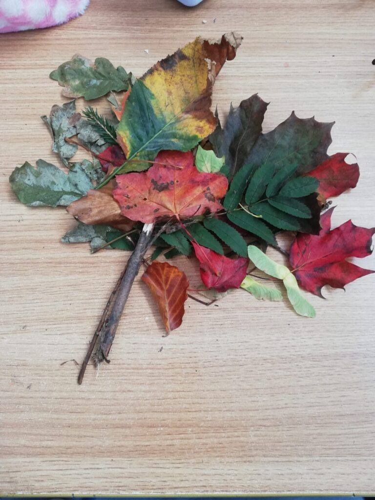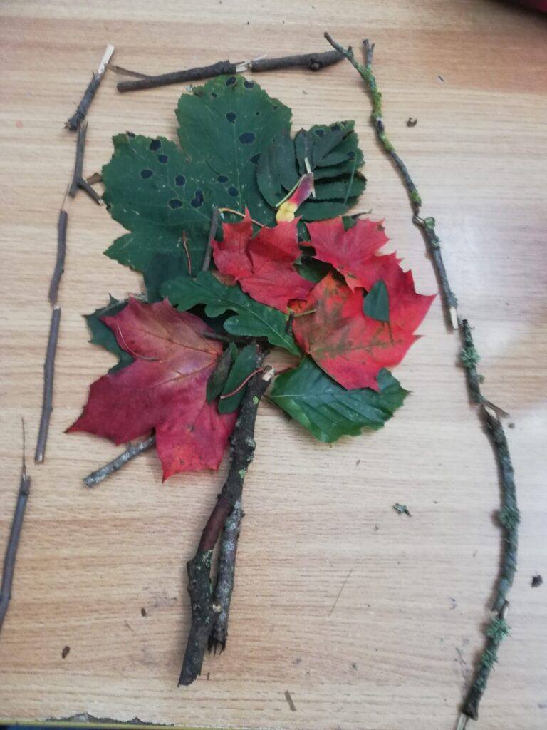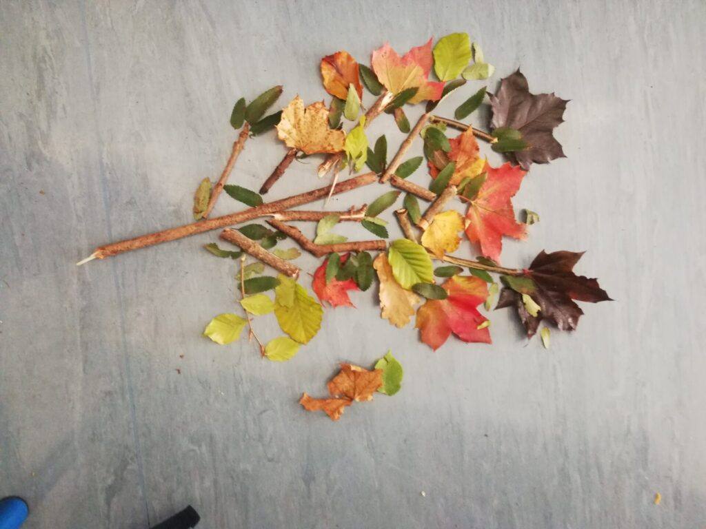 We collected leaves and twigs for our Autumn Tree Construction in room 8.
