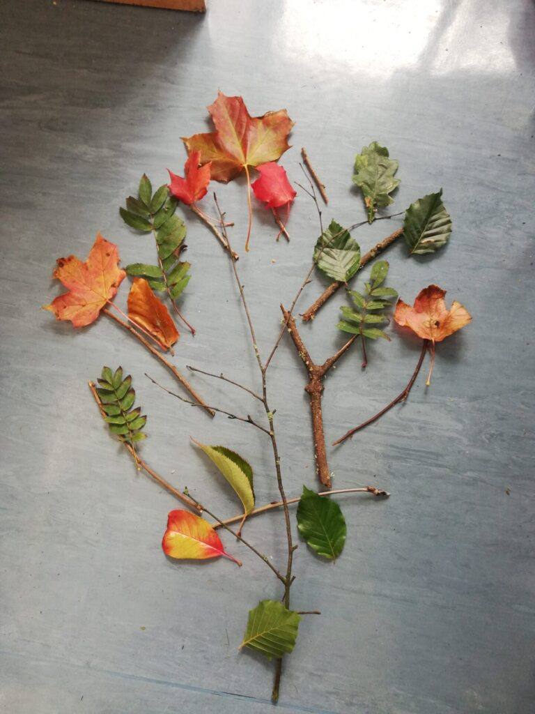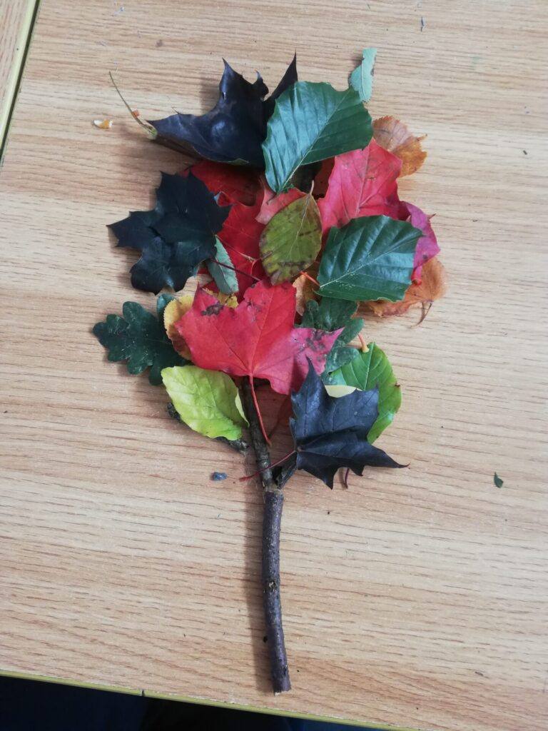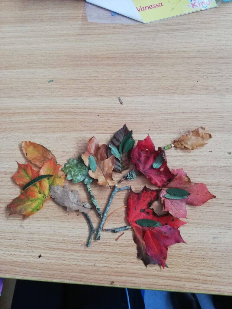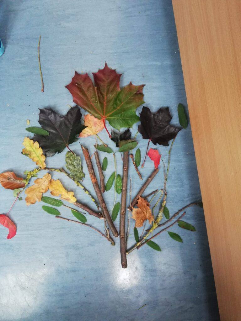 We collected leaves and twigs for our Autumn Tree Construction in room 8.
