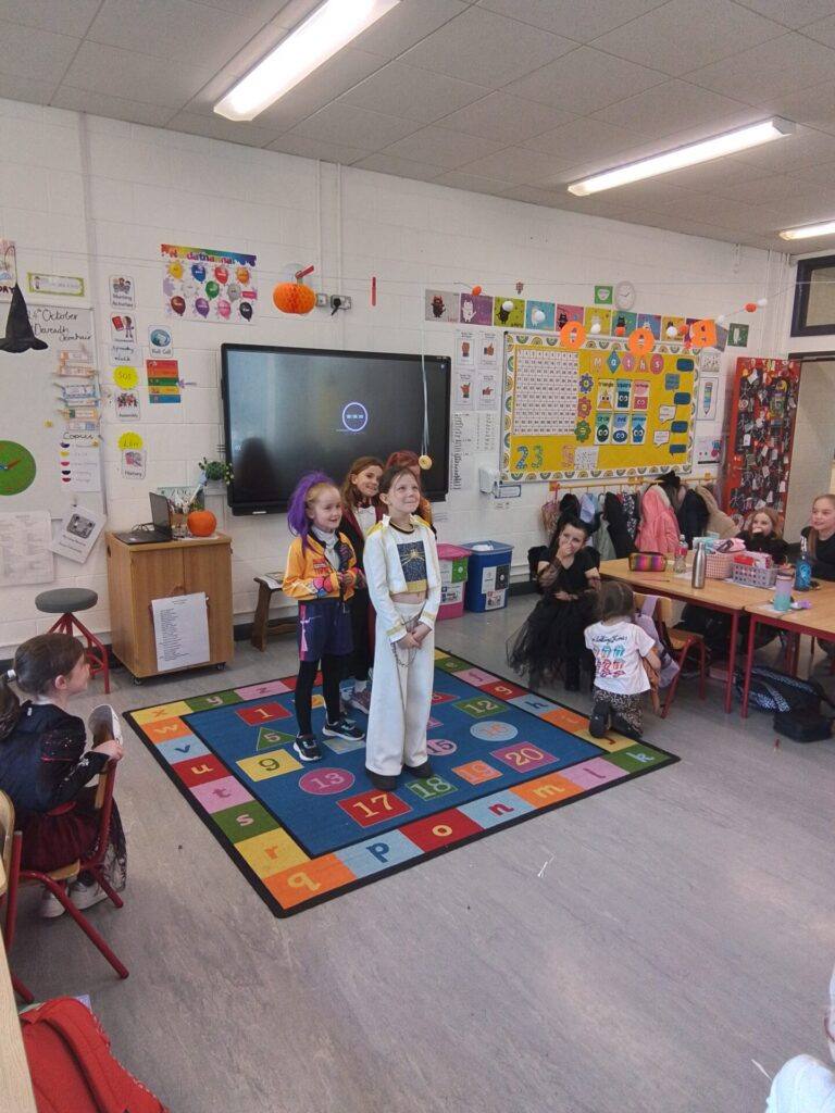 Second class had great fun on the Spooky Walk today. We also got to try some Bairín Breac and play ‘snap apple’ with doughnuts!