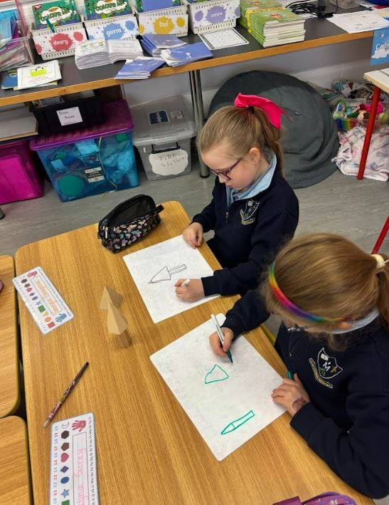 Senior infants have had a great start to 2026! We were all thrilled to be back into school and routine after the holidays. We have been super busy learning our digraph (double sounds) in phonics & we have become excellent at recognising & writing these in words. In maths, we explored 2D shapes in the environment & had great fun making shapes from lollipop sticks & magnatiles. Our strand for PE has been gymnastics, which was a great one for everyone to practise our climbing, rolling & tumbling skills! Our theme for the month has been the firestation. It was been so interesting learning about firefighters and the work they do daily to help people. We had a super role-play area for this theme & the girls loved dressing up as firefighters. Lastly, we had great fun making St. Brigid’s Day crosses from rushes with Ms. Flood’s 5th class.