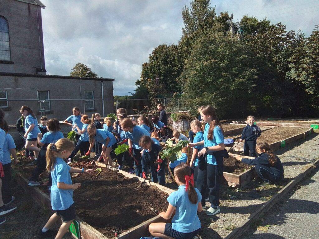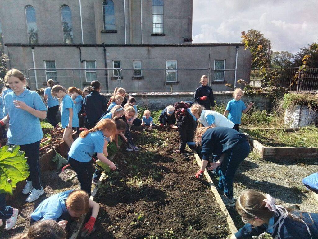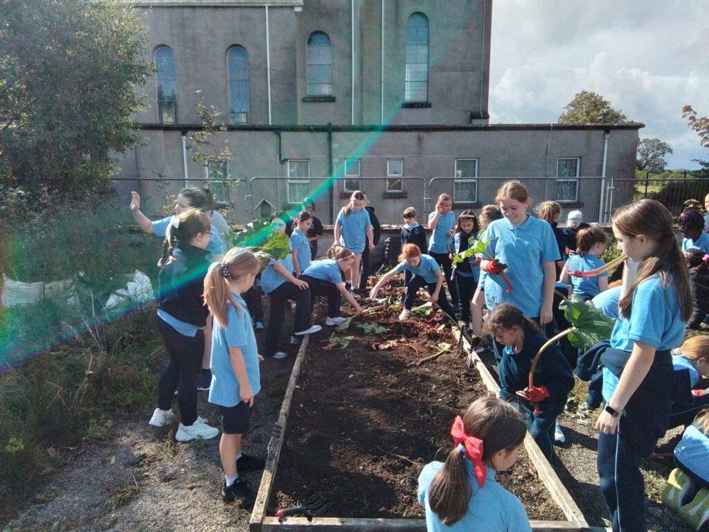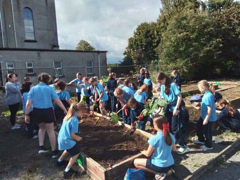 Ms. Dillon’s and Ms. Flood’s Class were harvesting rhubarb!