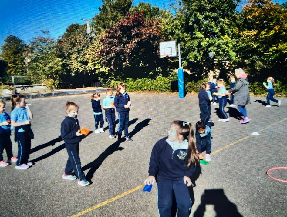 On Tuesday, September 23rd we celebrated National Fitness Day at Bunscoil Bhríde. We chatted about the importance of movement & exercise & how this is so important for our bodies & brains. We run laps daily around our running track but also on this day we headed outdoors to take part in some physical games & activities. We played Simon Says, musical statues & we played a bean bag toss game. We all had loads of fun & the sunshine was an added bonus!