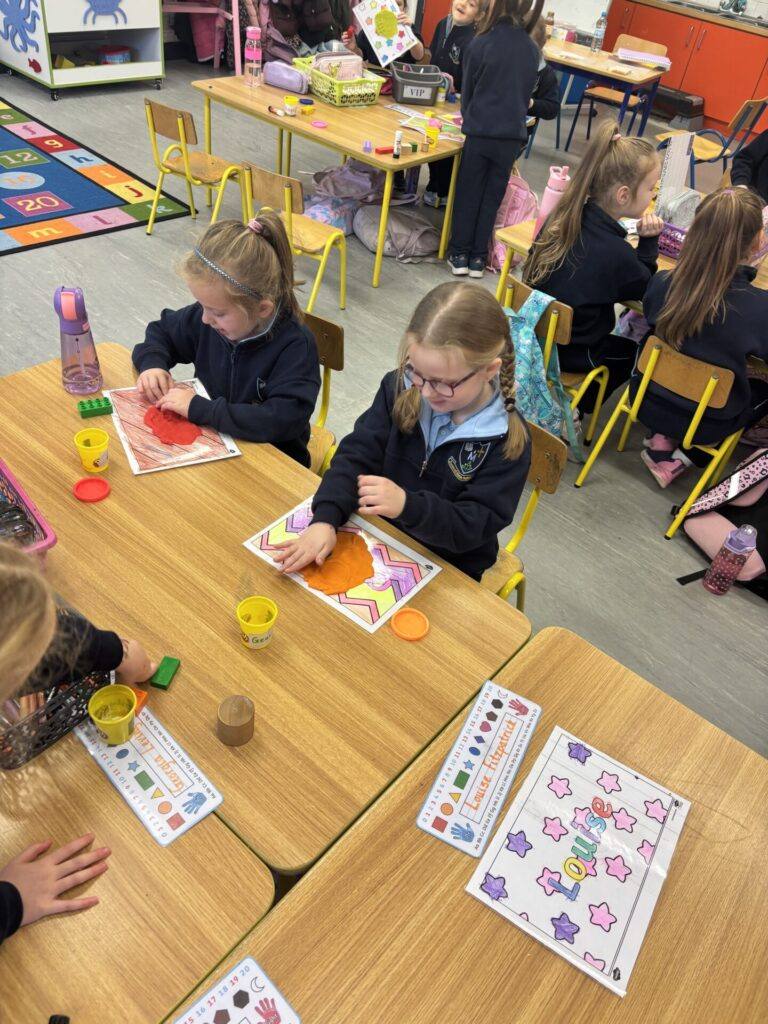 Senior Infants have had a great November & it has flown by! We had a great time with both Ms Gleeson & Ms Mulvin. We learned all about length, 3D shapes and counting & combining in maths. As Gaeilge our themes were éide scoile & cluiche peile. In literacy we are finished revising our single sounds and we are excited to begin learning our vowel digraphs in December. In SESE, we learned about play & playgrounds, and we interviewed parents & grandparents about games they played when they were younger. We learned about toys around the world in geography. In visual art, we studied the work of Wassily Kadinsky & his style of using circles & overlapping. We made some lovely Kadinksy inspired circle and love heart art also. As part of STEM week. we learned about how shadows are formed & we had lots of fun maths games, maths trails and activities to take part in!