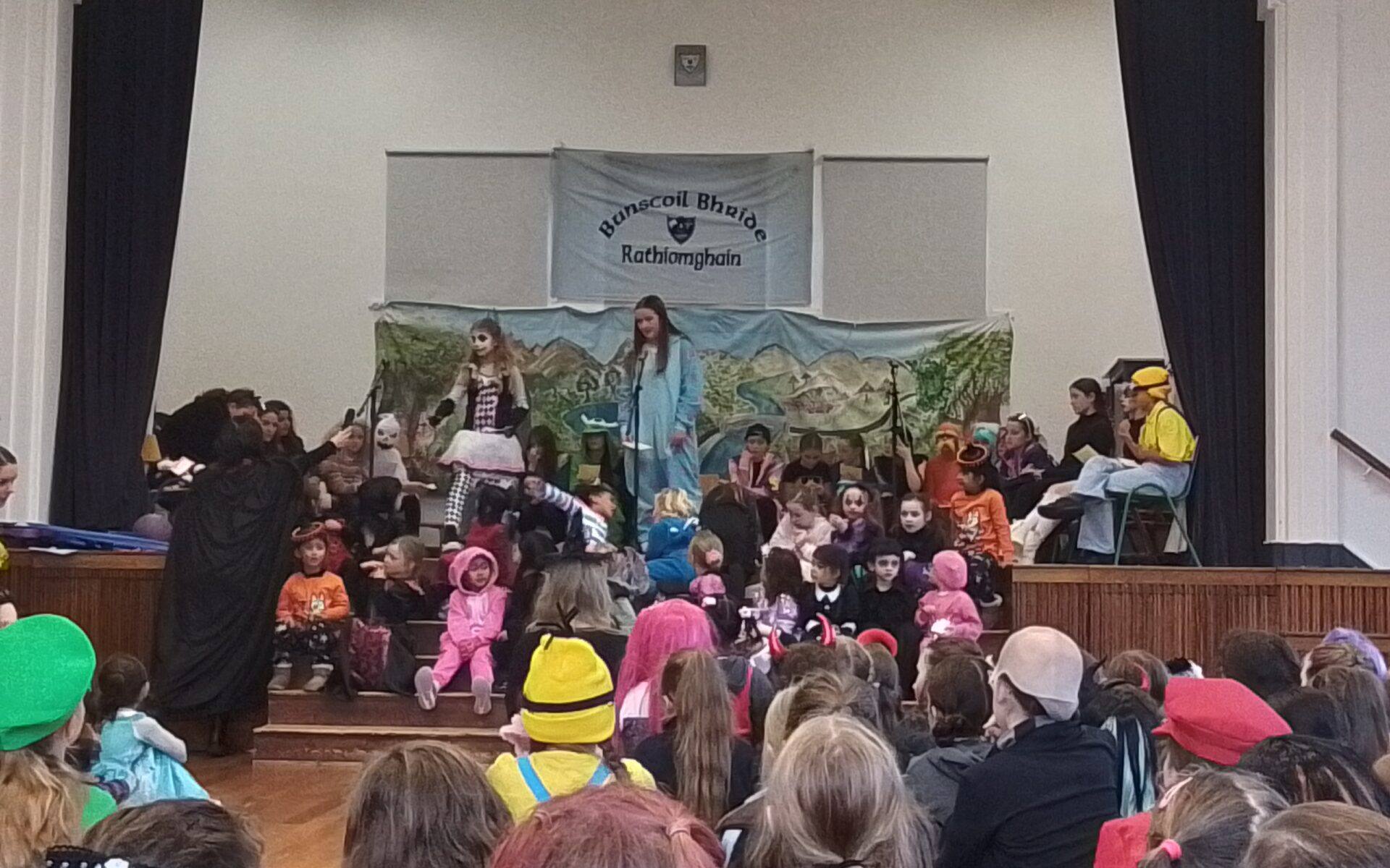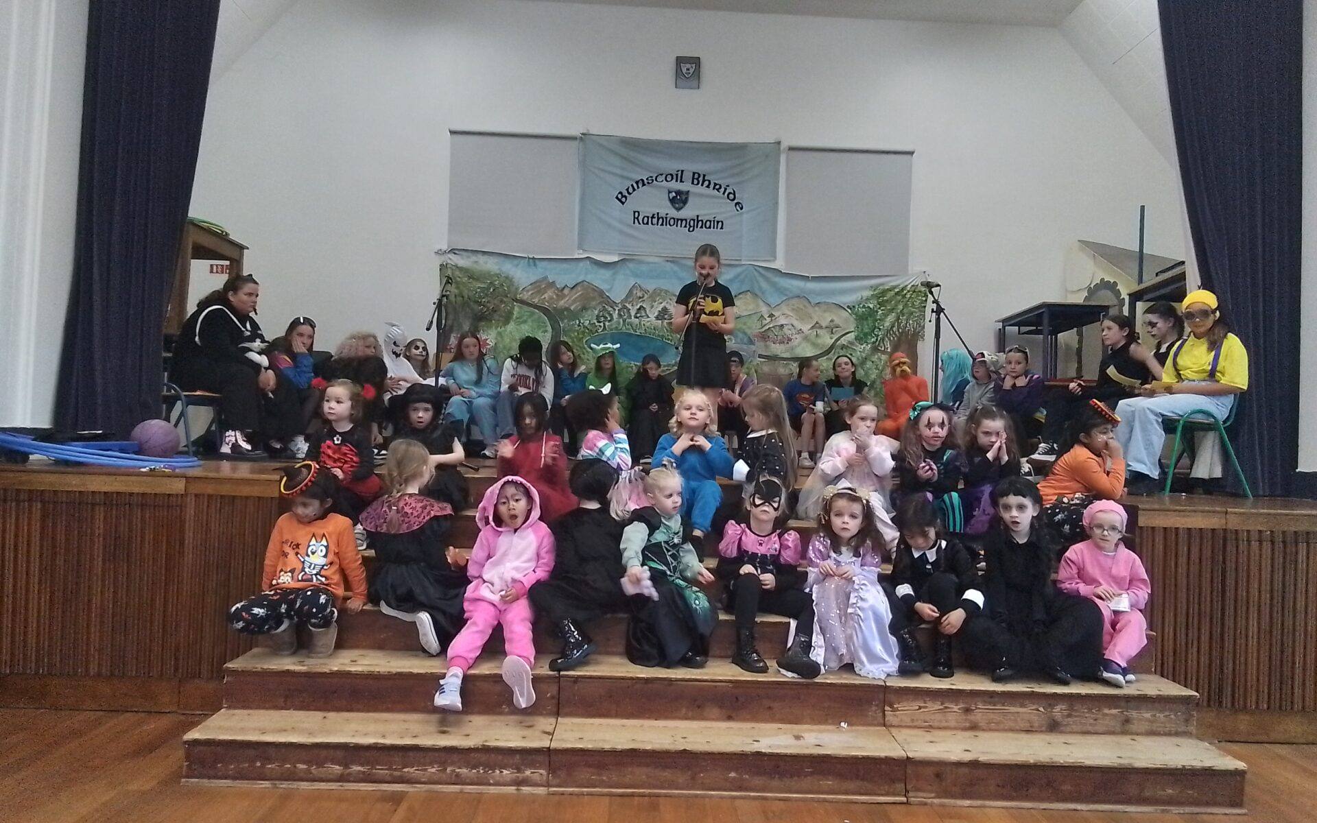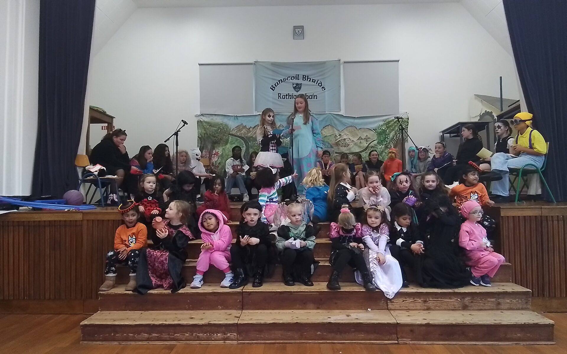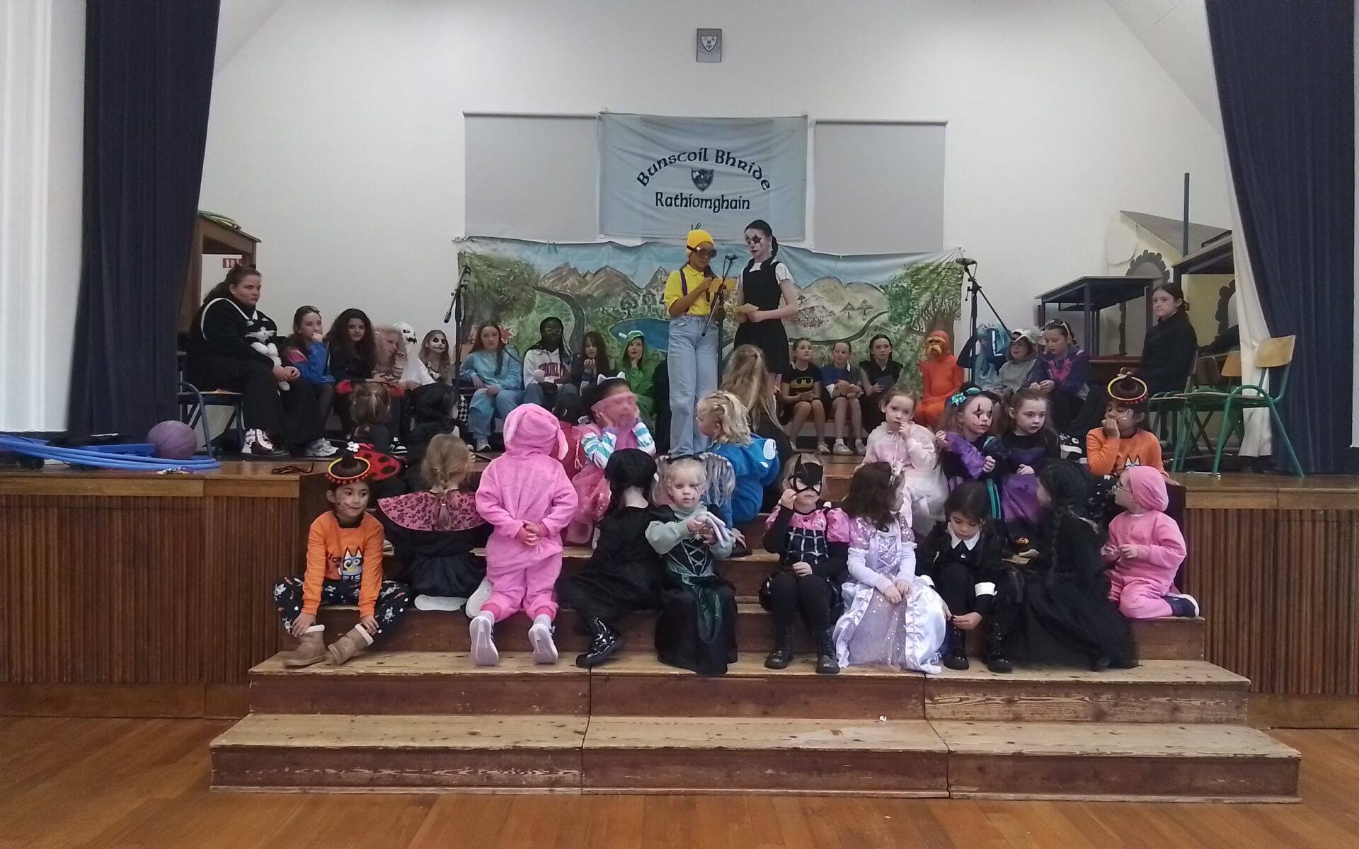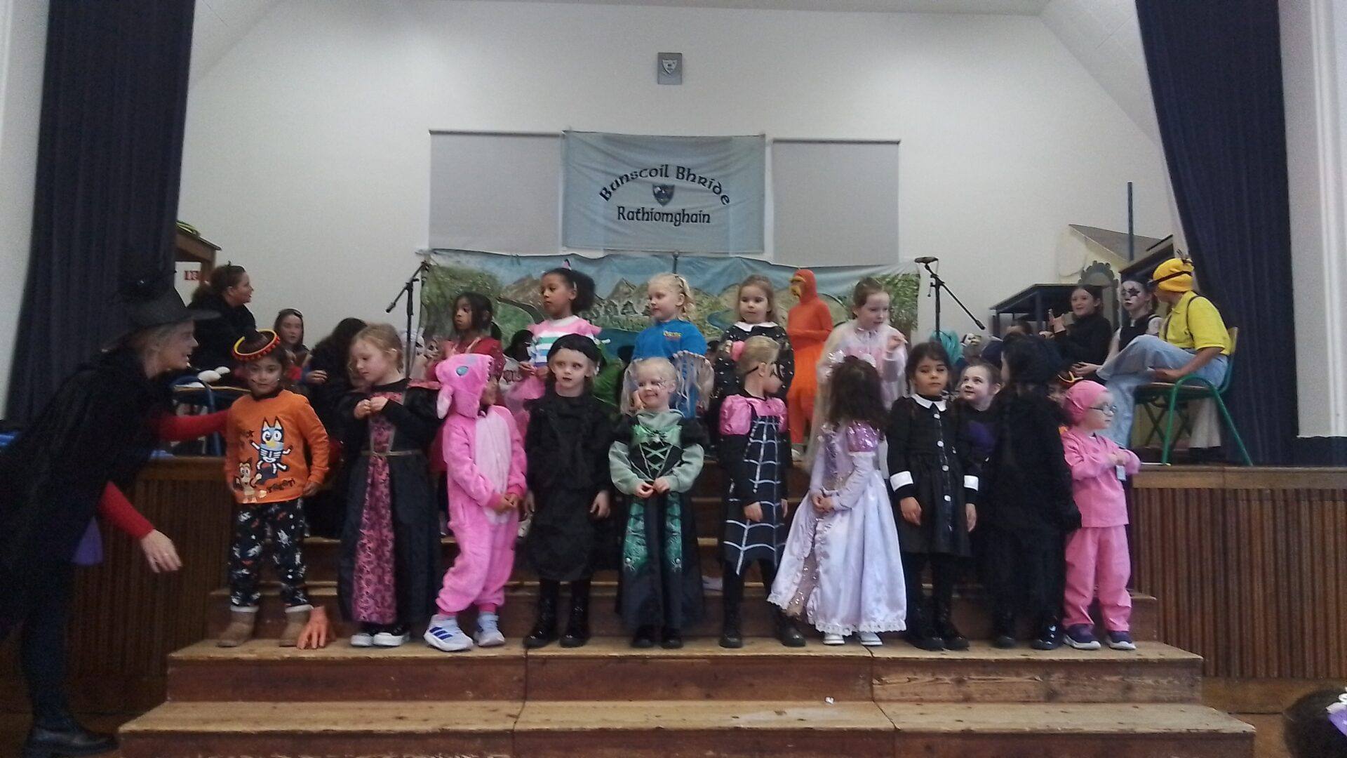 After our spooky walk, Ms. Marrinan’s 5th and 6th class and Ms. Feeney’s Junior Infants led our October Assembly. We celebrated October birthdays, listened to our school news and enjoyed the wonderful ukulele performance, songs and poems.