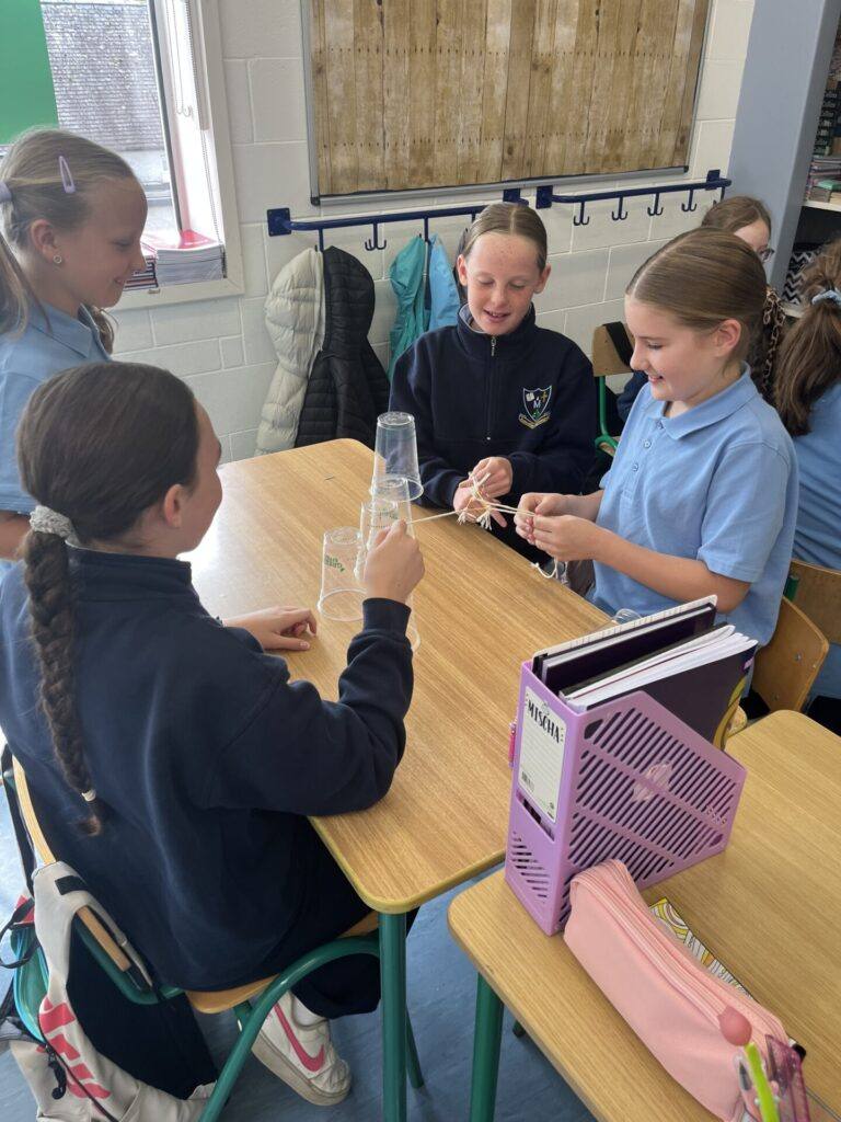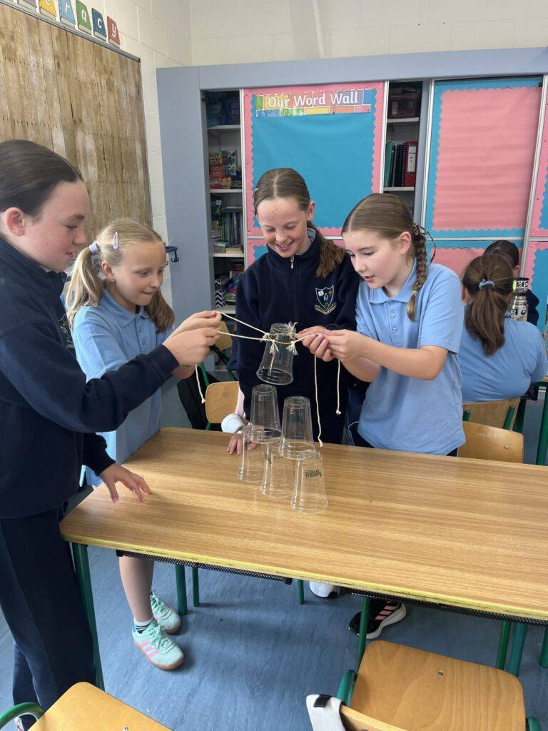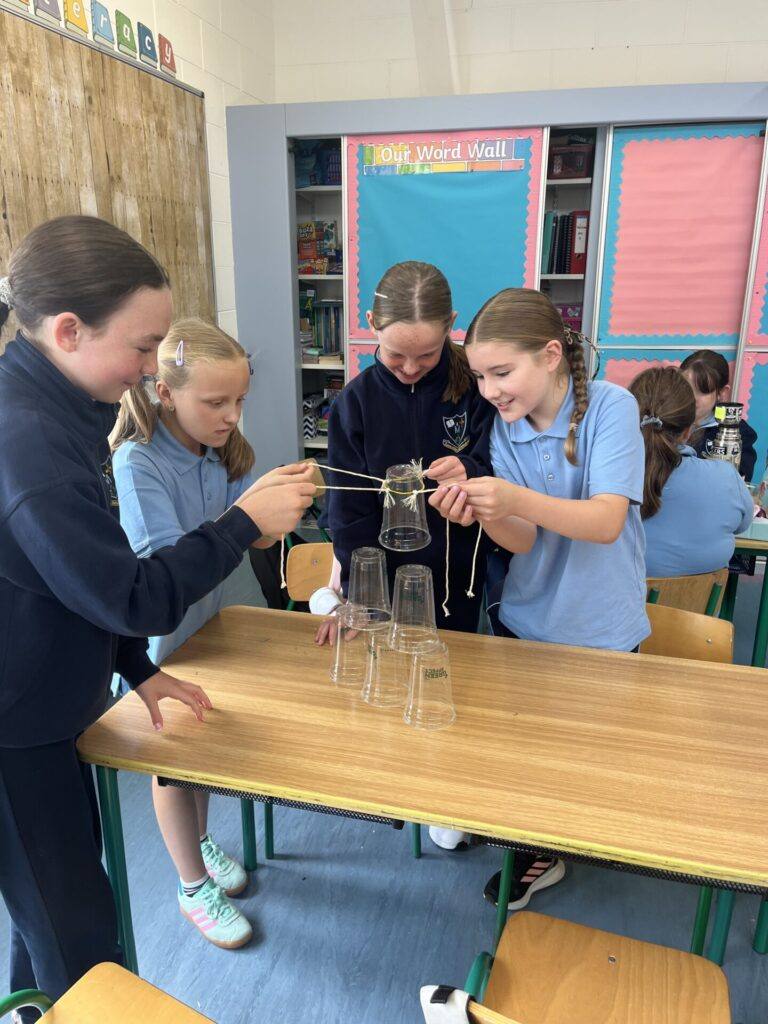 At the start of the year, our class took part in some fun STEM activities designed to build teamwork and trust. Our first challenge involved stacking cups, where children had to work together and communicate clearly to build a cup pyramid using only one string each. We also took on the tricky task of “Saving Fred,” using just paperclips to rescue him from the water. It was amazing to see the problem-solving, discussions and laughter throughout the activities.